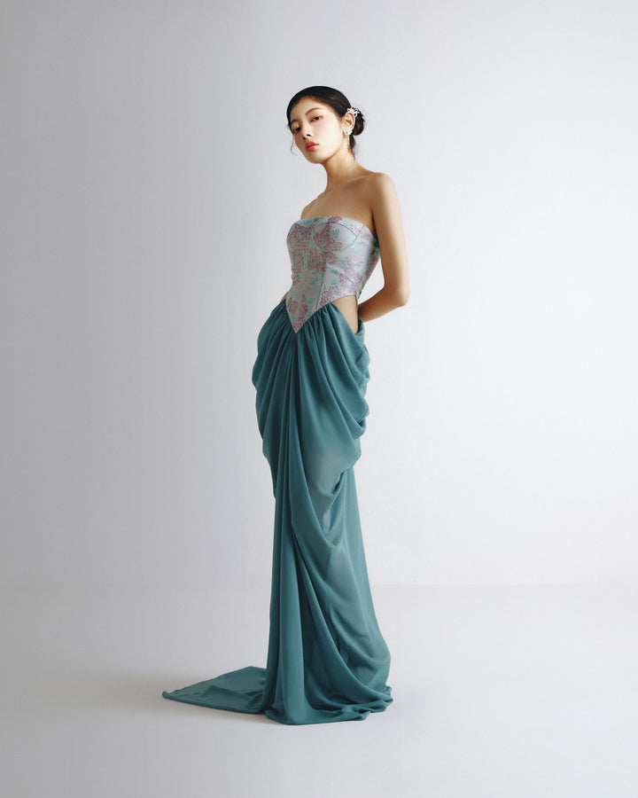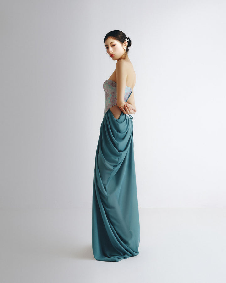 Measurement is taken around the bust with the tape measure running on the same level in front, at the back and on the sides.