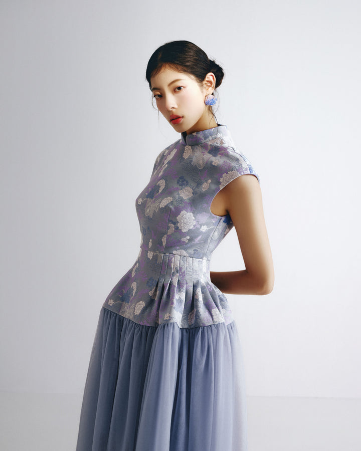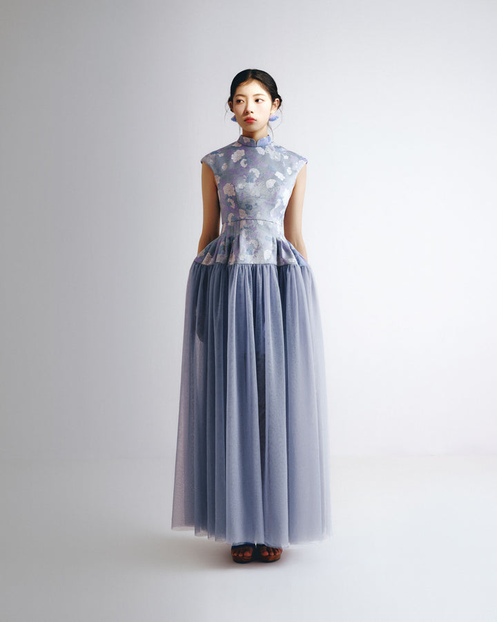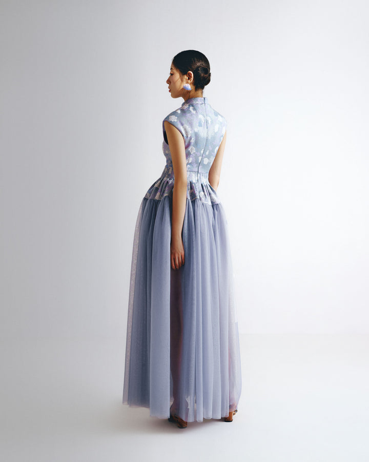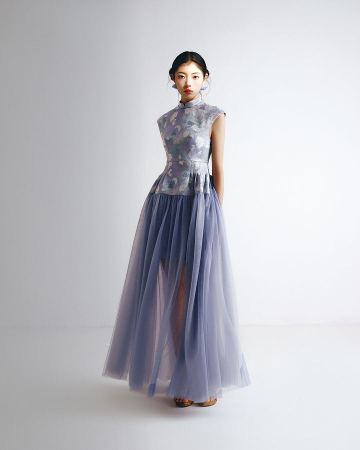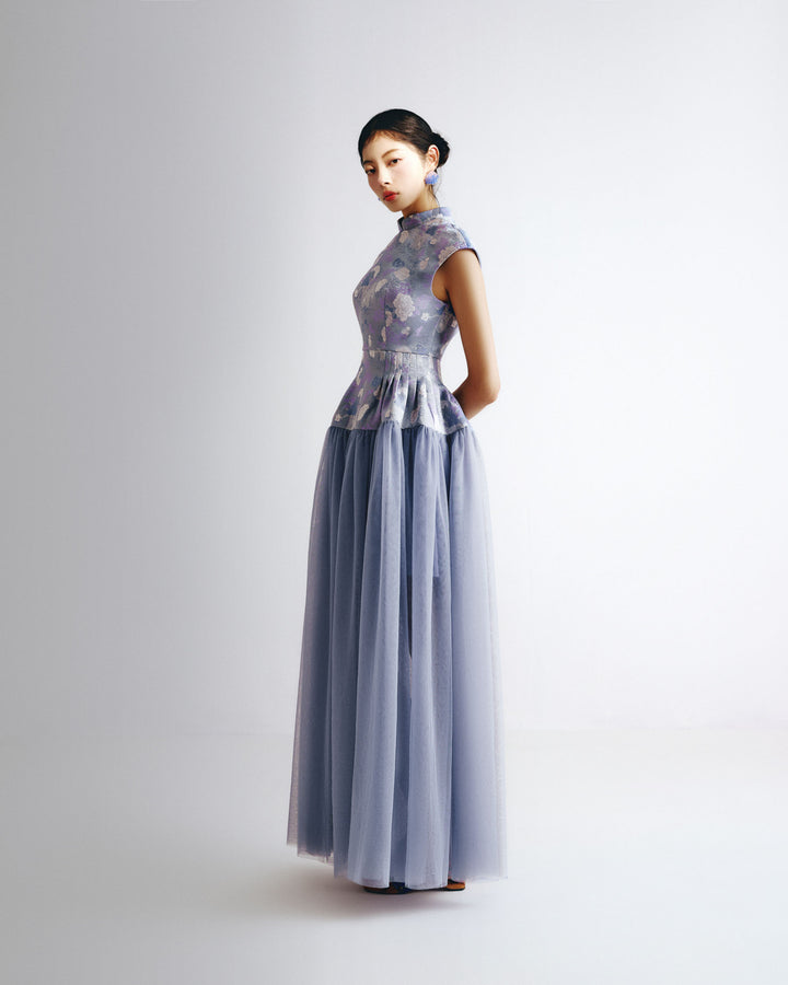 Mandarin Collar Fitted Bodice Lace Gown